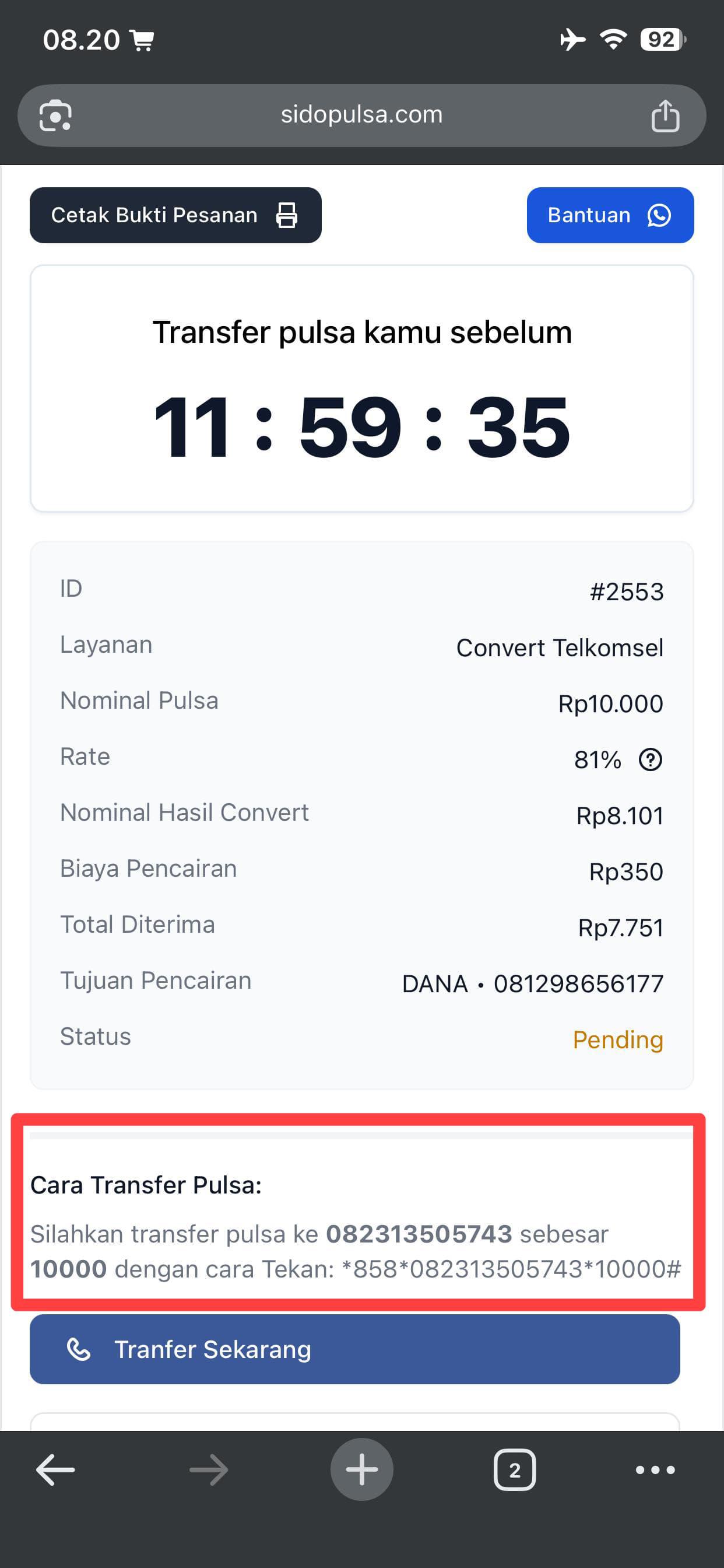 Ikuti langkah di bawah ini untuk convert pulsa ke Bank atau saldo ewallet (DANA, OVO, GOPAY, Shopeepay, dan lain-lain). Pastikan nomor yang kamu input benar agar proses otomatis berjalan lancar.