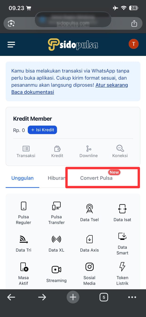 Masuk ke halaman beranda, lalu pilih tab Convert Pulsa seperti pada gambar.